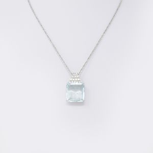 Pendente geometrico in oro bianco con acquamarina e diamanti