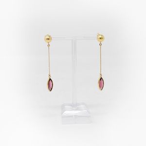 Orecchini pendenti in oro giallo con peridoti, corniola e ametista