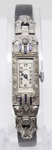 Orologio da polso donna Art Déco in platino con piccoli brillanti e zaffiri