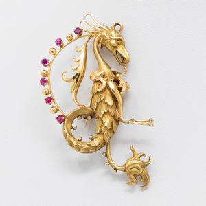 Spilla a delfino con tridente in oro giallo e bianco con piccoli brillanti