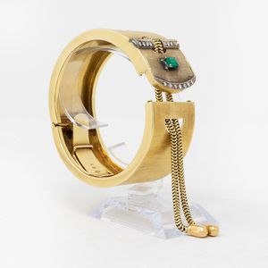 Bracciale a fascia rigida in oro giallo con smeraldo e diamanti