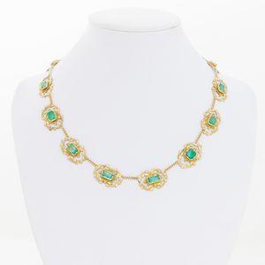 oro 18 kt, smeraldi kt 1,80 ca., brillanti kt 2,30 ca., g 17,5.