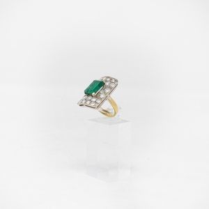 oro 18 kt, smeraldo kt 1,00 ca., diamanti kt 2,20 ca., misura 19, g 13,5.