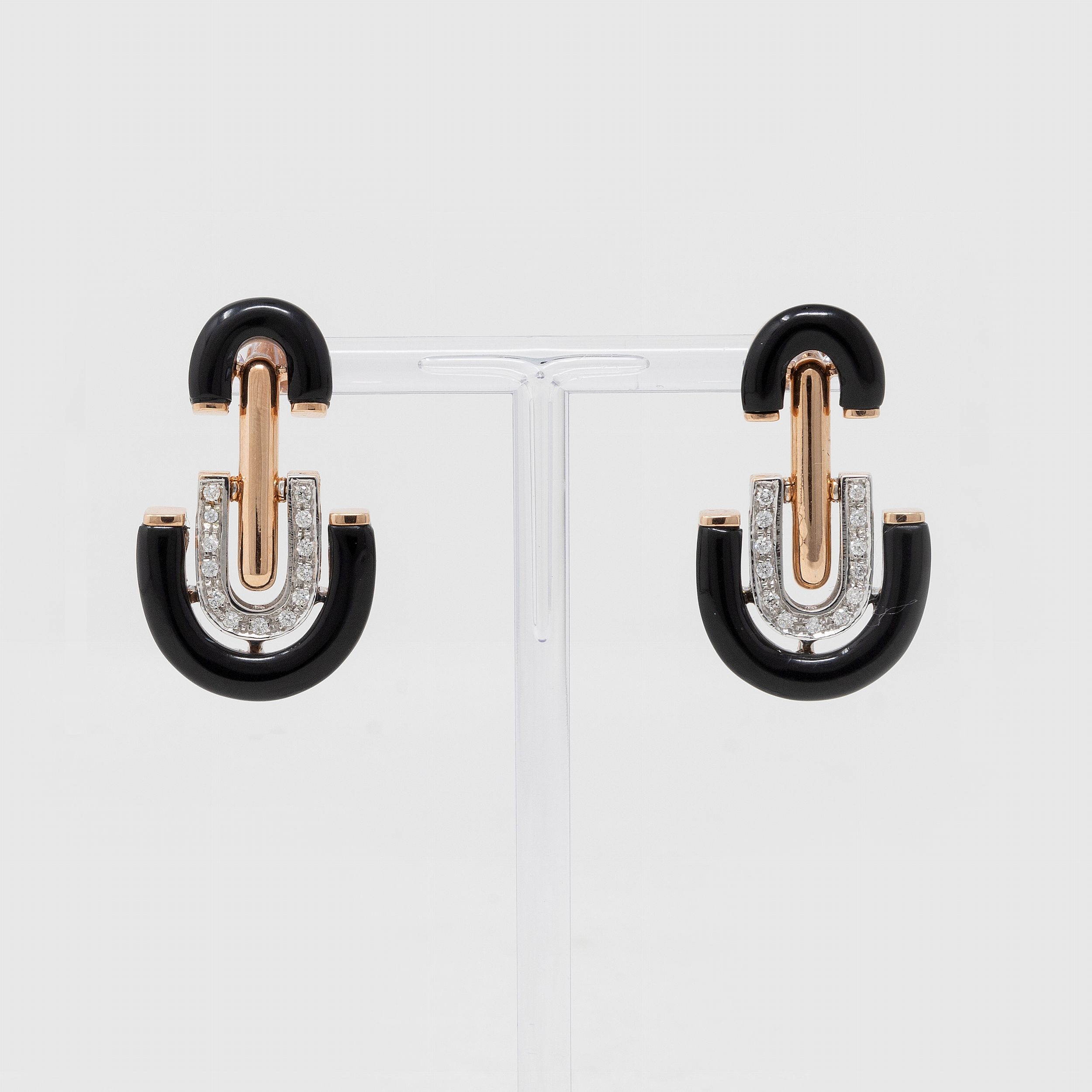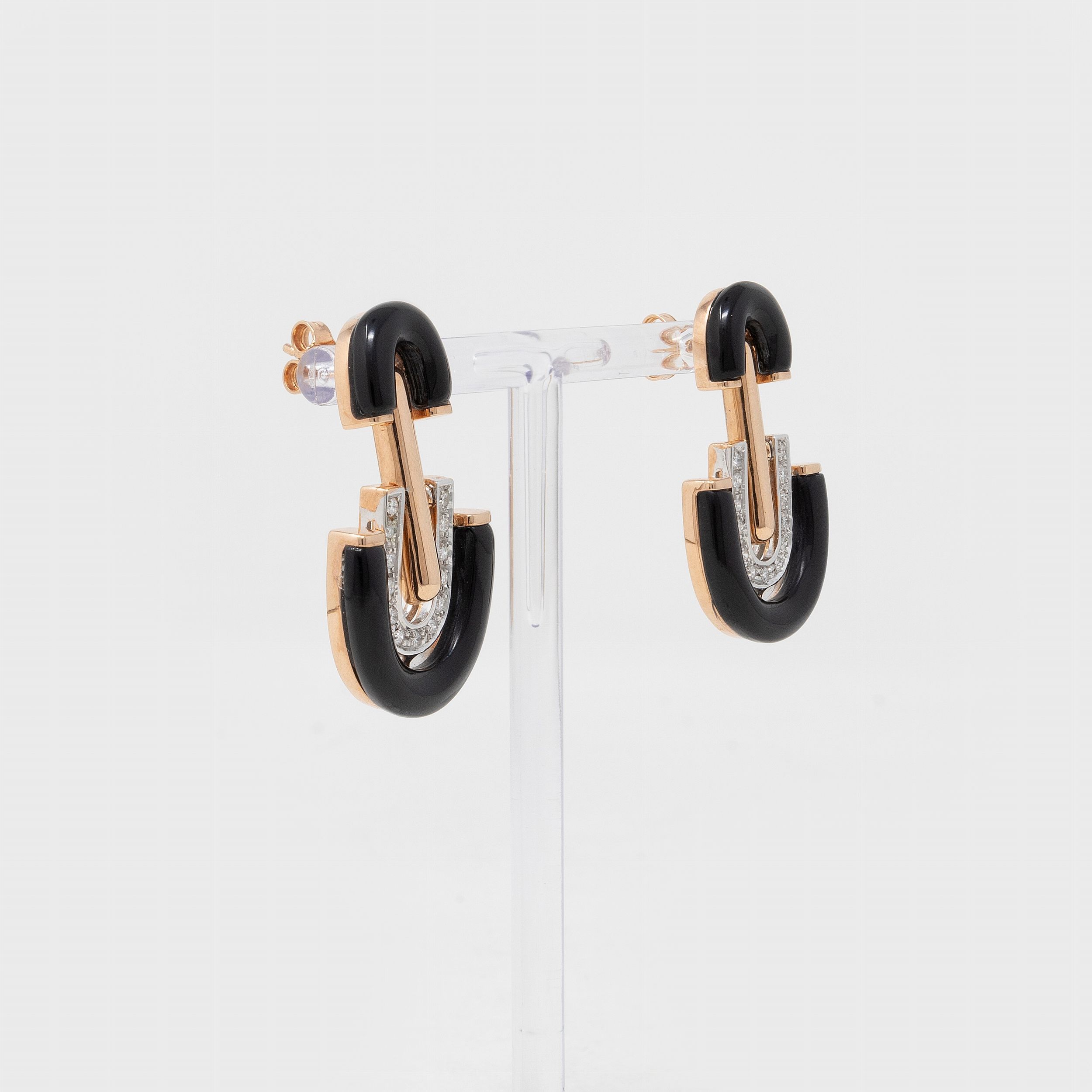 Orecchini pendenti a semicerchio in oro rosa con onice e brillanti