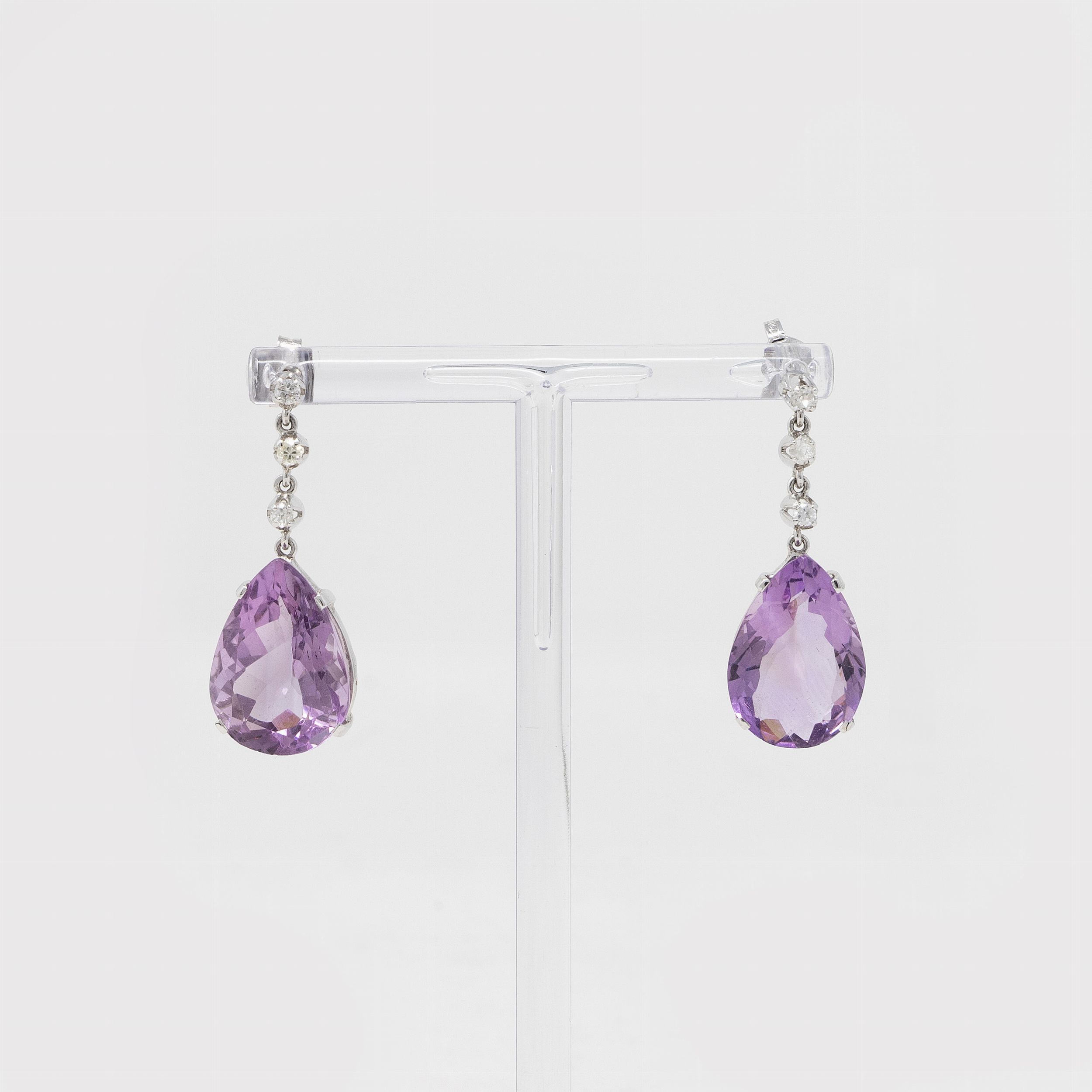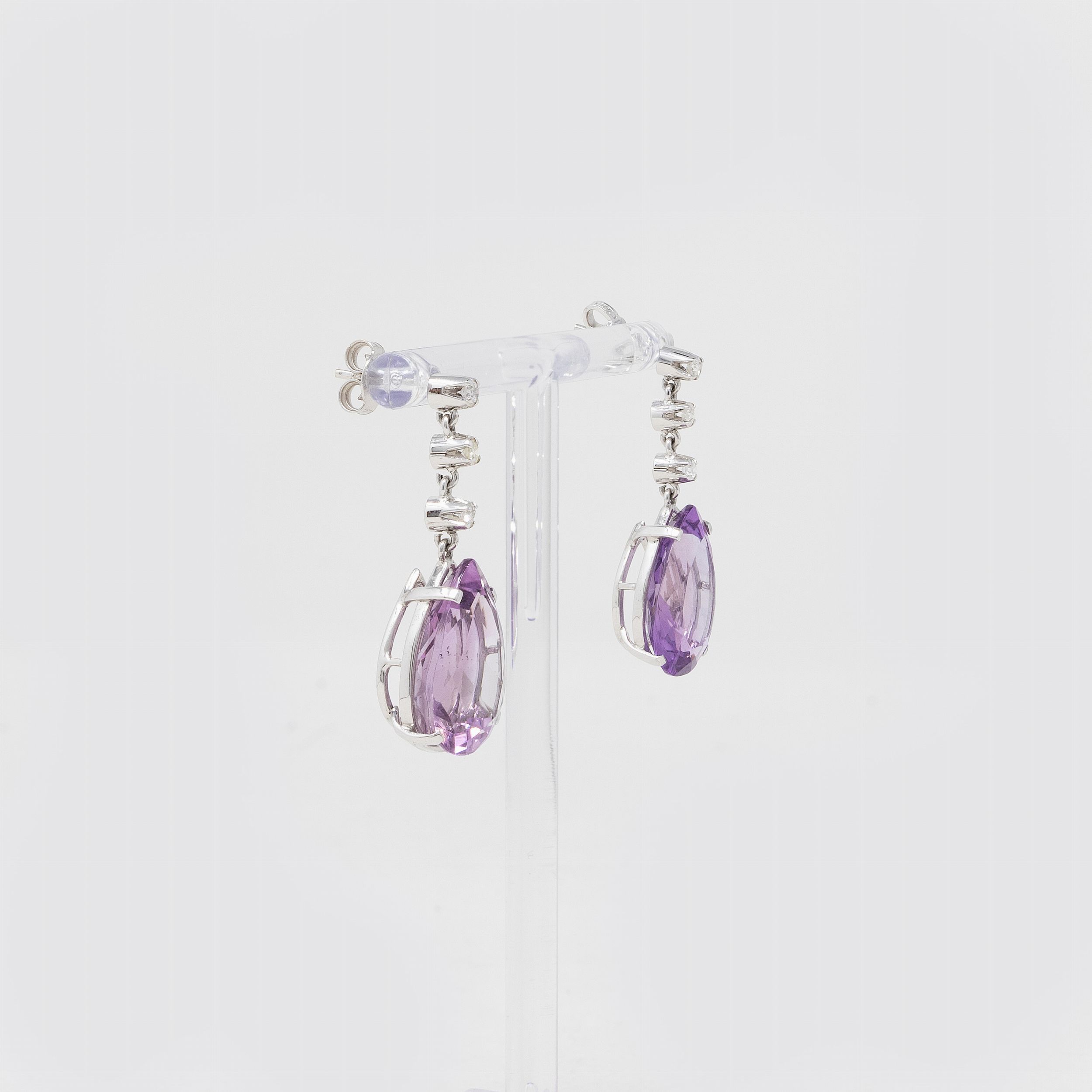 Orecchini pendenti in oro bianco con ametiste e brillanti
