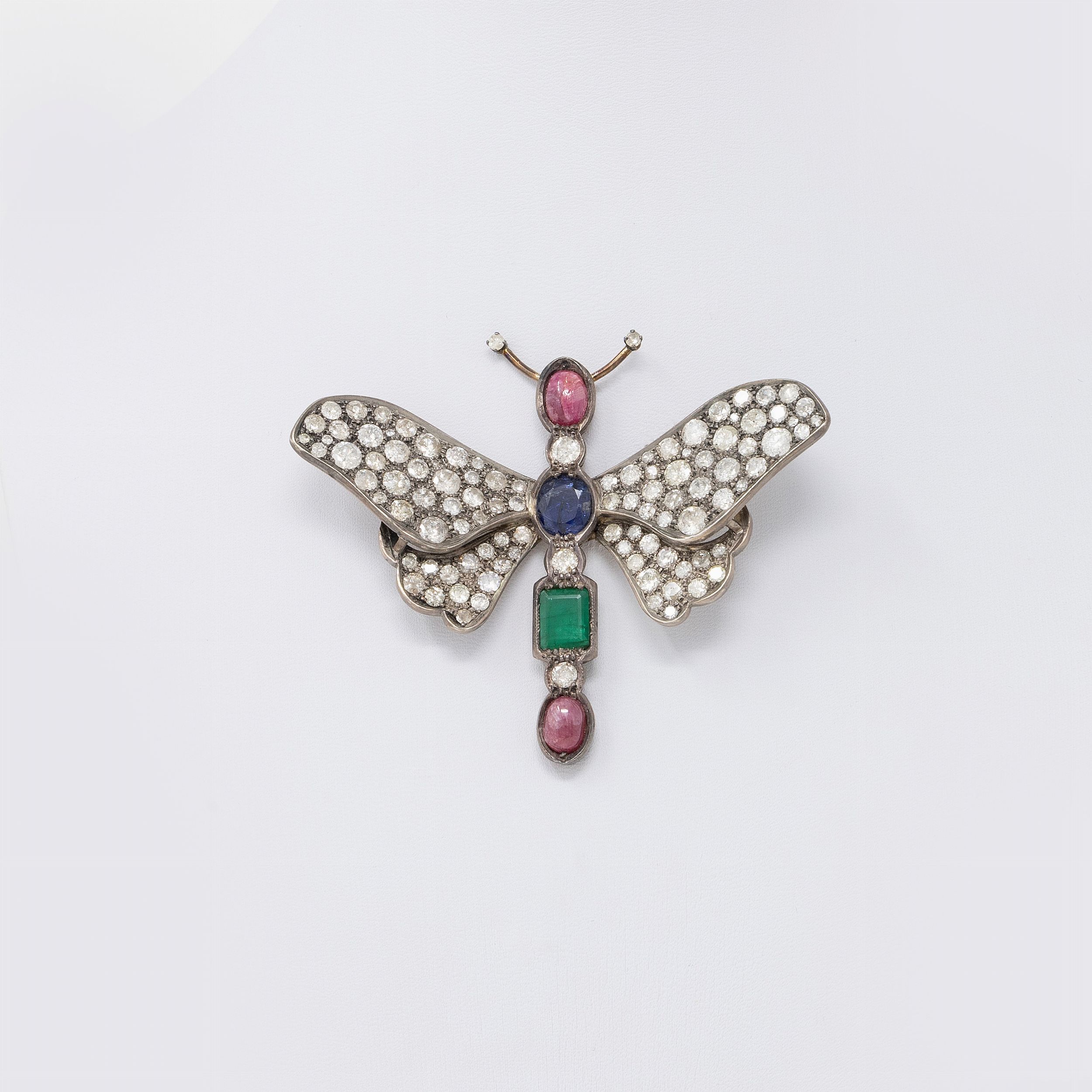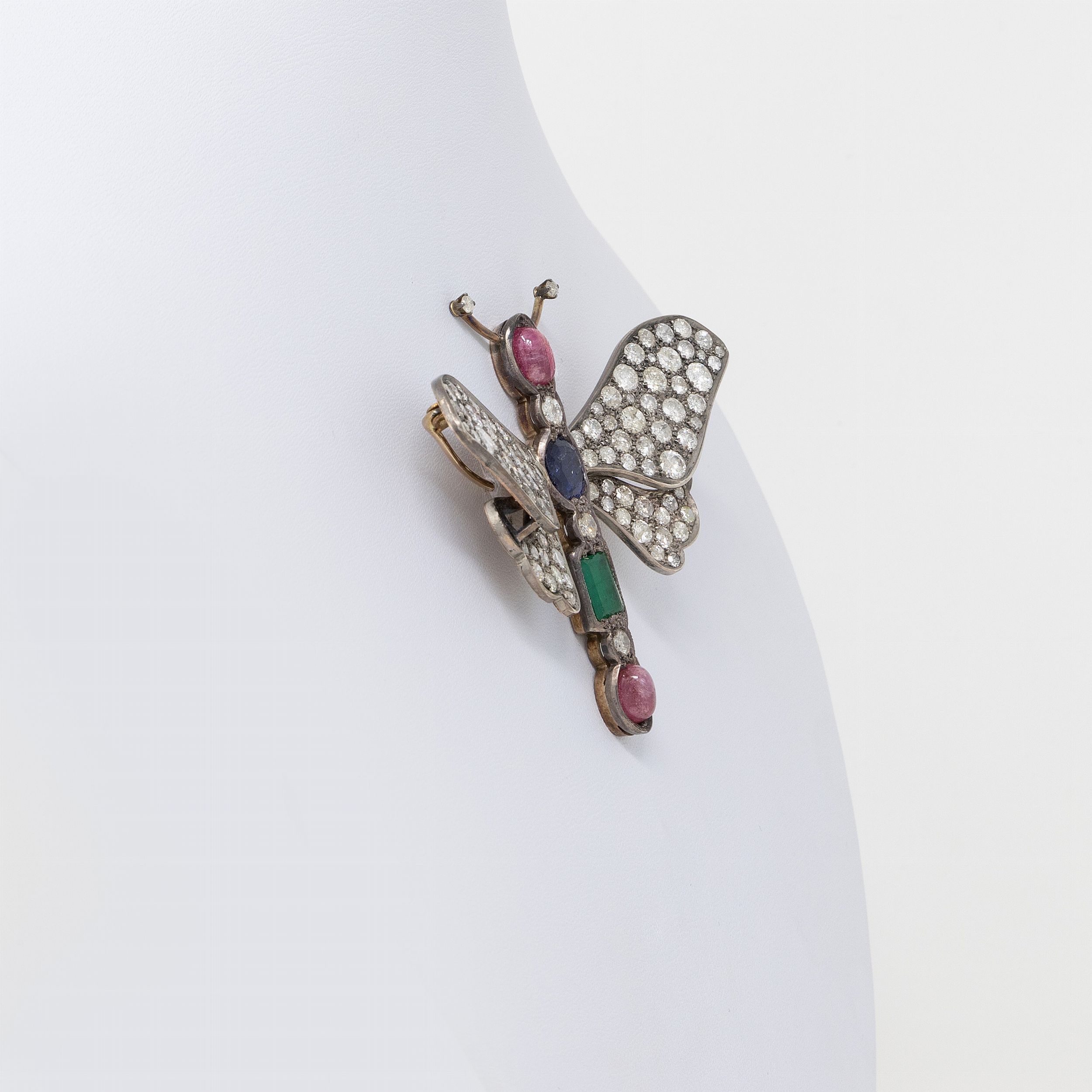 Spilla a farfalla in oro giallo e argento con diamanti, radici di rubino, zaffiro [..]