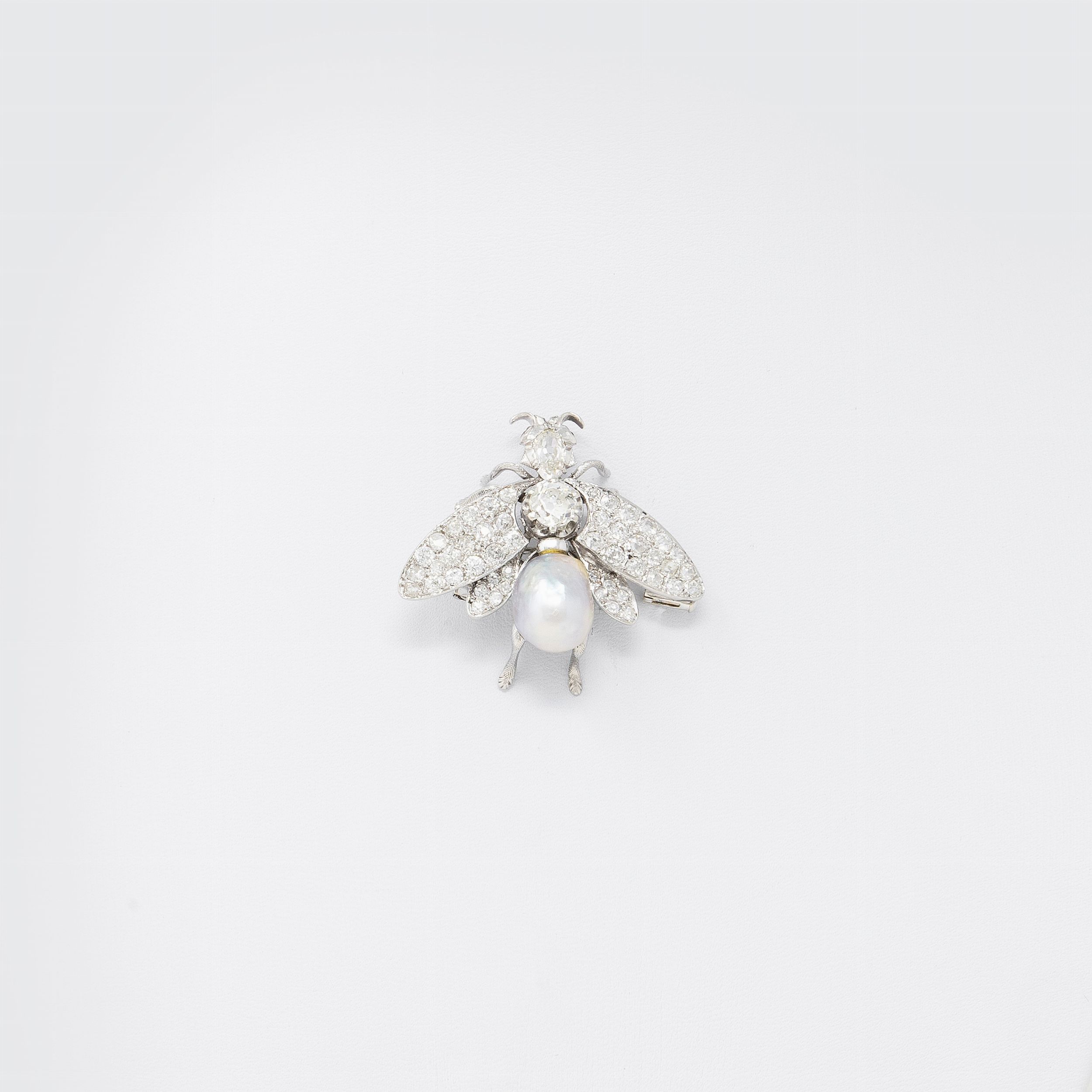 oro 18 kt, diamanti kt 2,00 ca., perla mm 10 ø ca., g 12.