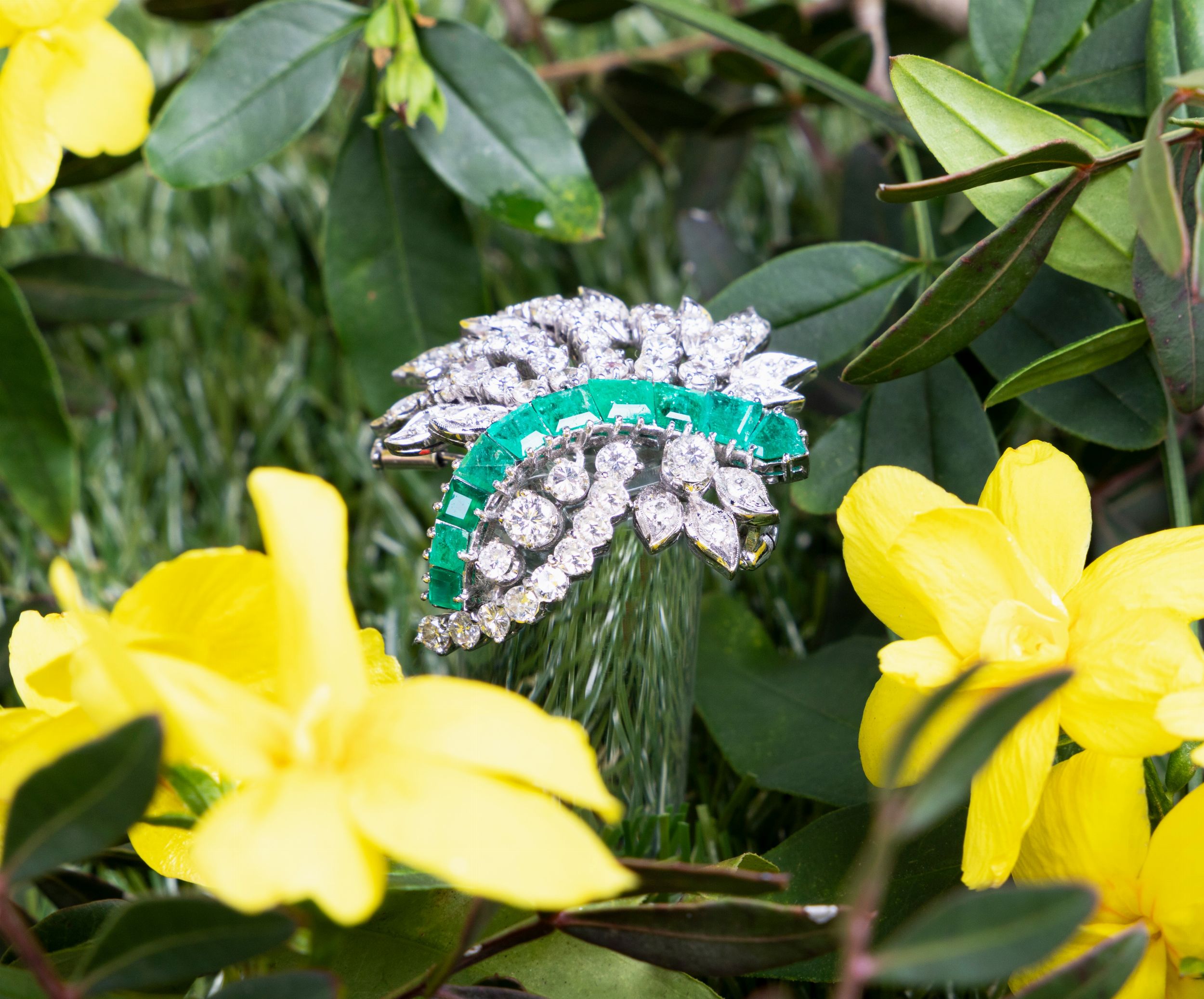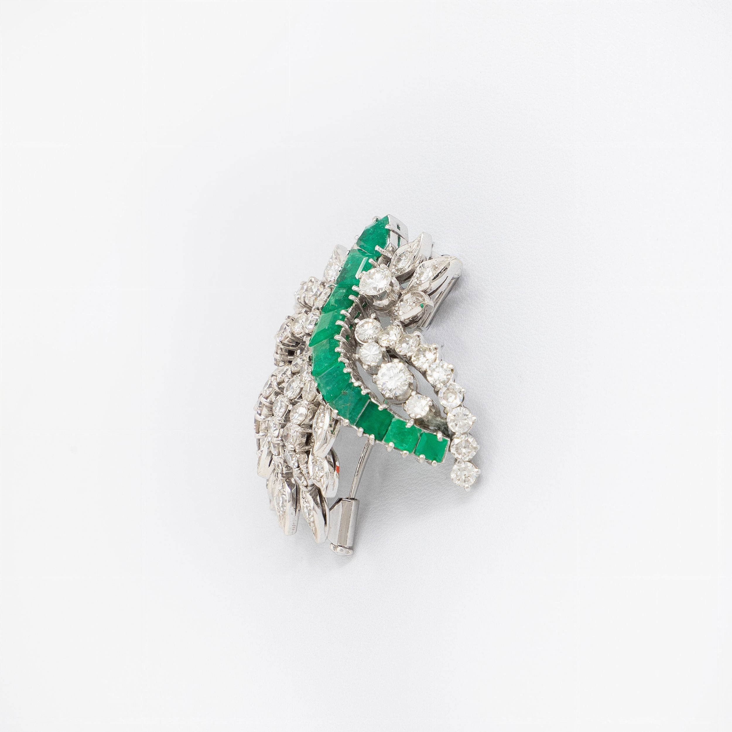 Spilla a motivo floreale in oro bianco con smeraldi e brillanti