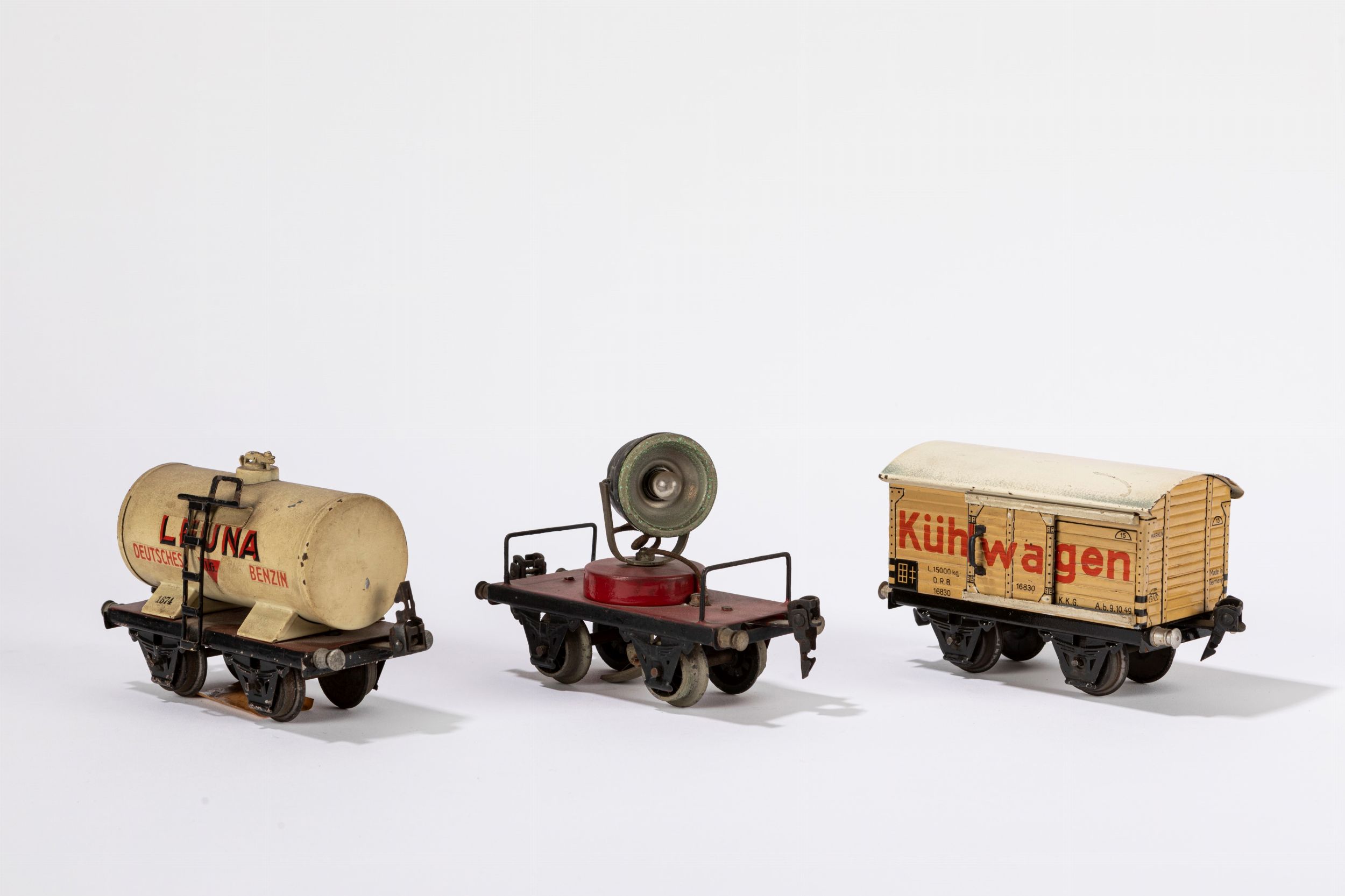 Leuna Deutsches Benzin Marklin 1674, vagone con faro Marklin 1964 e Kühlwagen Marklin 1683