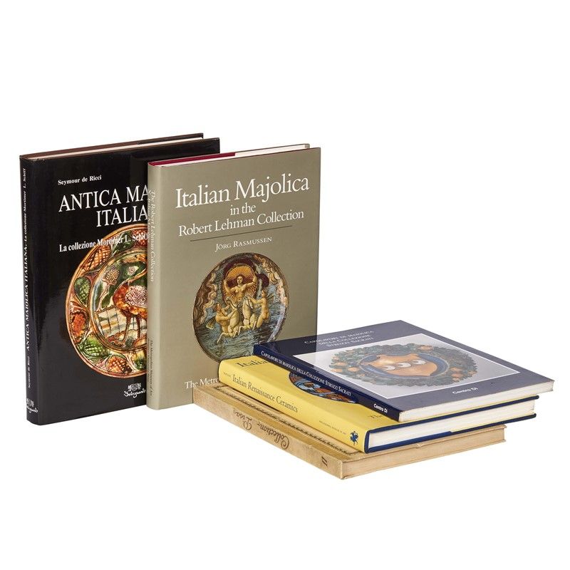 MAIOLICA. COLLEZIONI. Lotto di 5 volumi. Catalogue de la Collection Pisa. vol. II: Planches, 1937; Capolavori di maiolica della Collezione Strozzi Sacrati, 1998; Antica maiolica Italiana. La collezione Mortimer L. Schiff, ristampa 1988; The Robert Lehman Collection. Vol. X. Italian Majolica, 1989; Italian Renaissance Ceramics. From Howard I. and Janet H. Stein Collection and the Philadelphia Museum of Art, 2001