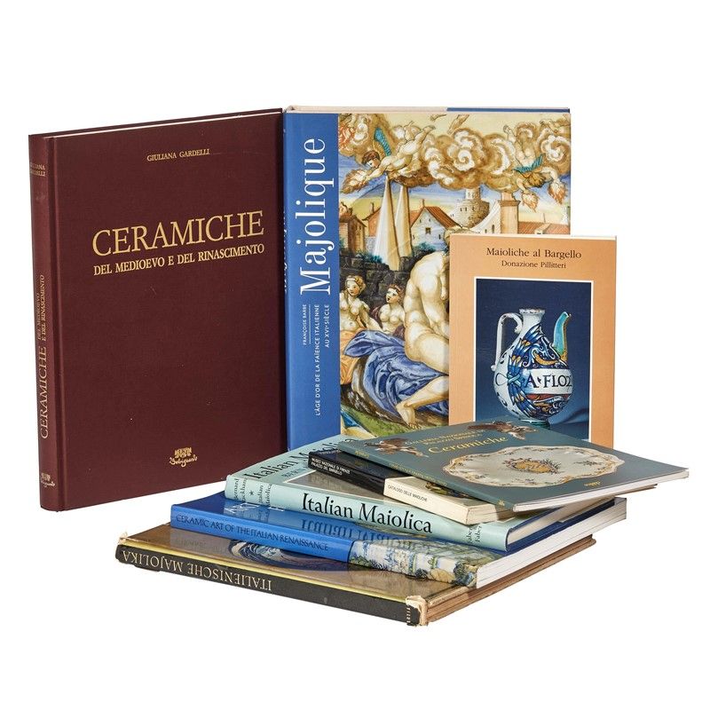 MAIOLICA. ITALIA. Lotto di 8 volumi. Italianische majolika, 1960; Italian maiolica, 1963; Museo Nazionale di Firenze. Palazzo del Bargello. Catalogo delle maioliche, 1971; Ceramiche del Medioevo e del Rinascimento, 1986; Ceramic art of the italian Renaissance, 1987; Maioliche al Bargello. Donazione Pilitteri, 1997; Galleria Nazionale di Palazzo Spinola. Ceramiche, 1999; Majolique. L’age d’or de la faience italienne au XVI° siècle, 2016