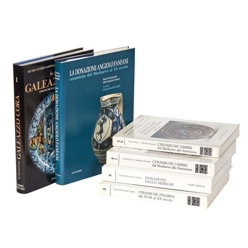 MAIOLICA. MUSEO FAENZA. Lotto di 6 volumi. La donazione Galeazzo Cora. Ceramiche dal Medioevo al XIX secolo, 1985; Ceramiche pesaresi dal XVIII al XX secolo 1986; Donazione Paolo Mereghi. Ceramiche europee ed orientali, 1987; Ceramiche umbre dal Medioevo allo Storicismo. Prima parte: Orvieto e Deruta, 1988; Ceramiche umbre dal Medioevo allo Storicismo. Parte seconda: Gubbio, Altri centri, lo Storicismo, 1989; La donazione Angiolo Fanfani. Ceramiche dal Medioevo al XX secolo, 1990