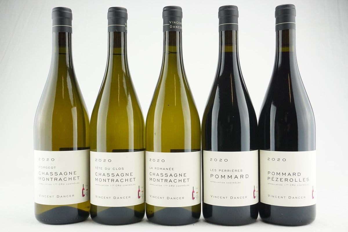 Selezione Domaine Vincent Dancer 2020 Côte de Beaune Chassagne-Montrachet Morgeot Premier Cru- 1 bt Chassagne-Montrachet Tête du Clos Premier Cru - 1 bt Chassagne-Montrachet La Romanée Premier Cru - 1 bt Pommard Les Perrieres - 1 bt Pommard Pézerolles Premier Cru - 1 bt 5 bt E