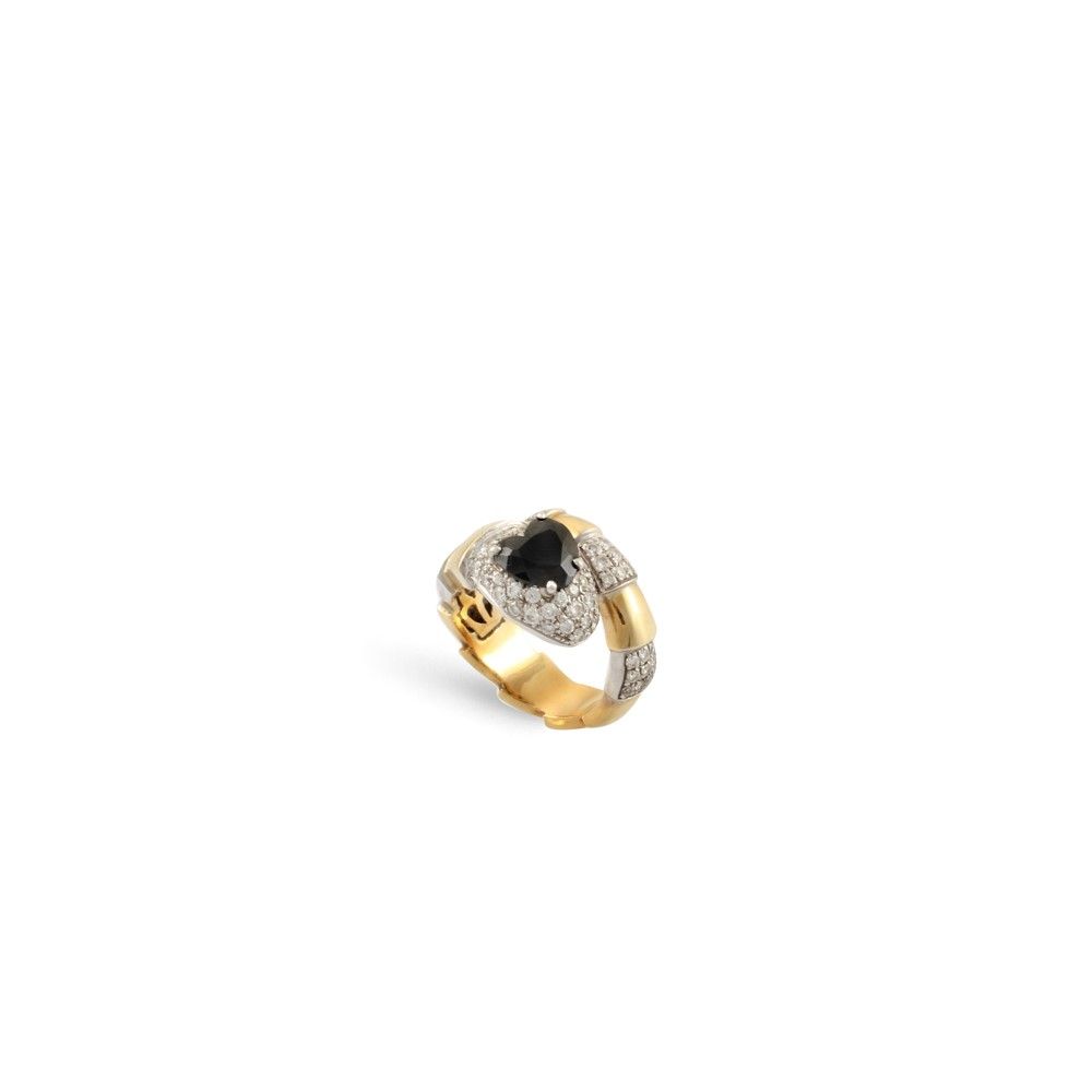 serpente in oro giallo e bianco con onice a cuore posto sulla sommitŕ della testa in pavé di brillanti ripresi anche lungo il corpo, gr. 17,2.