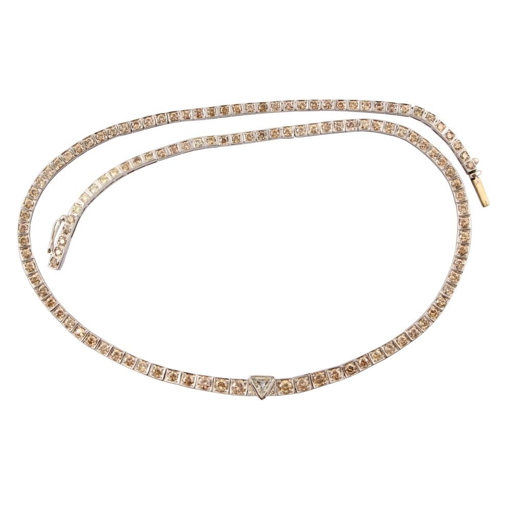 rivičre a scalare in oro bianco con diamanti “brown” del peso complessivo di 8,50 ct ca, al centro un diamante triangolare incolore del peso di 0,35 ct ca., gr. 26