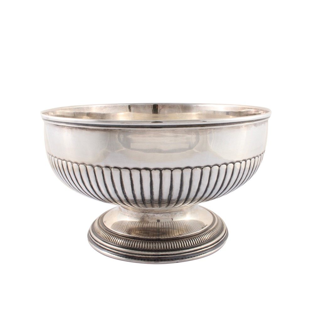 in argento a corpo circolare decorato da baccellature su piede gradinato, gr. 742 ca., dimensioni 23,5 h 13,5 cm. Numerario: 1 BO (Clementi - Casalecchio di Reno, per il periodo 1950-1970 ca. e dopo il 1970. La ditta Clementi di Bologna specializzata in posateria è stata acquistata dalla Buccellati Holding negli anni ’80).