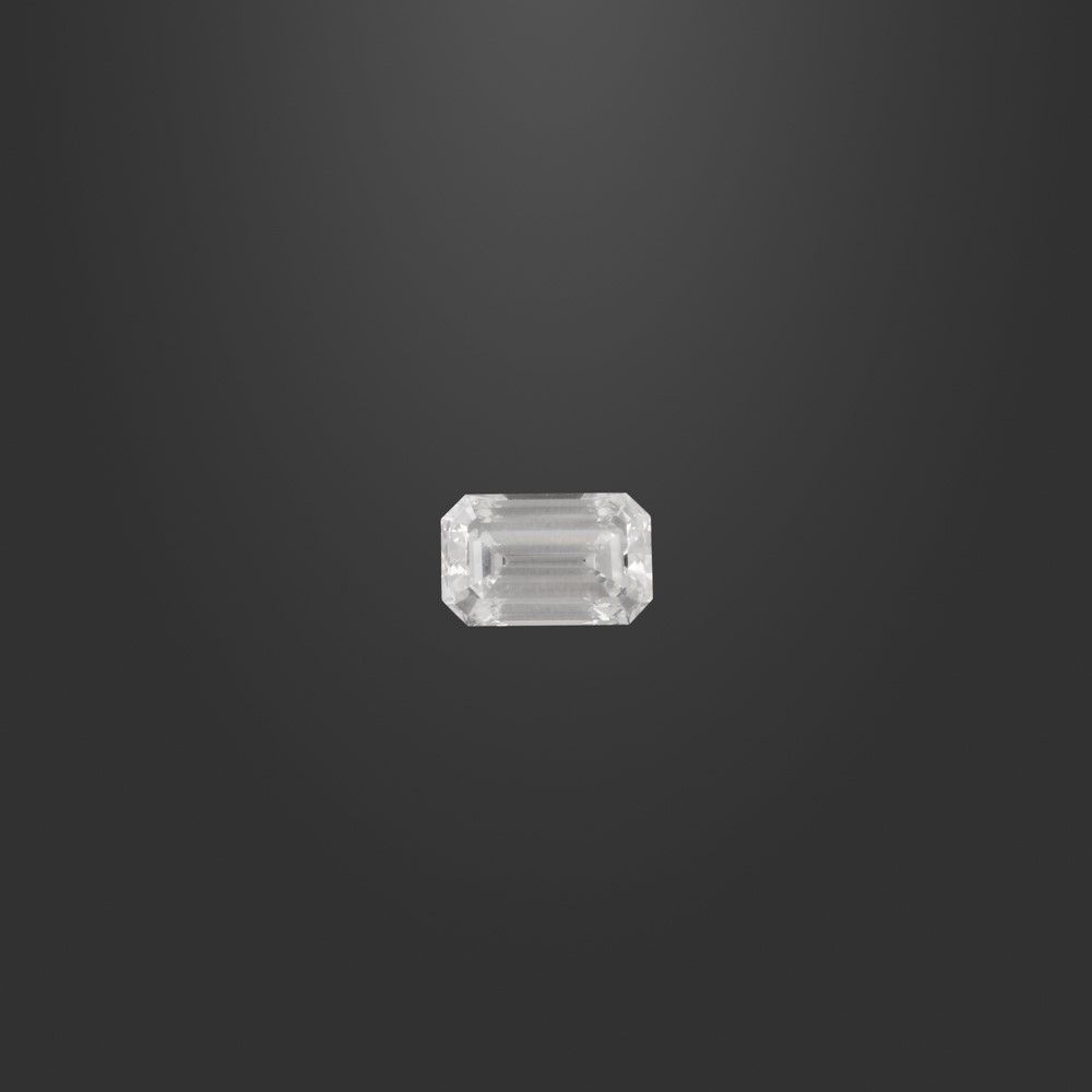 rettangolare con angoli tronchi taglio a gradini del peso di 4,02 ct., privo di montatura.