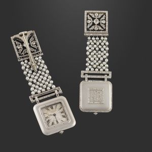 in oro bianco a forma quadrata con pavé di brillanti del peso complessivo di 1,40 ct ca., gr. 14. Numerario: 3181AL [..]