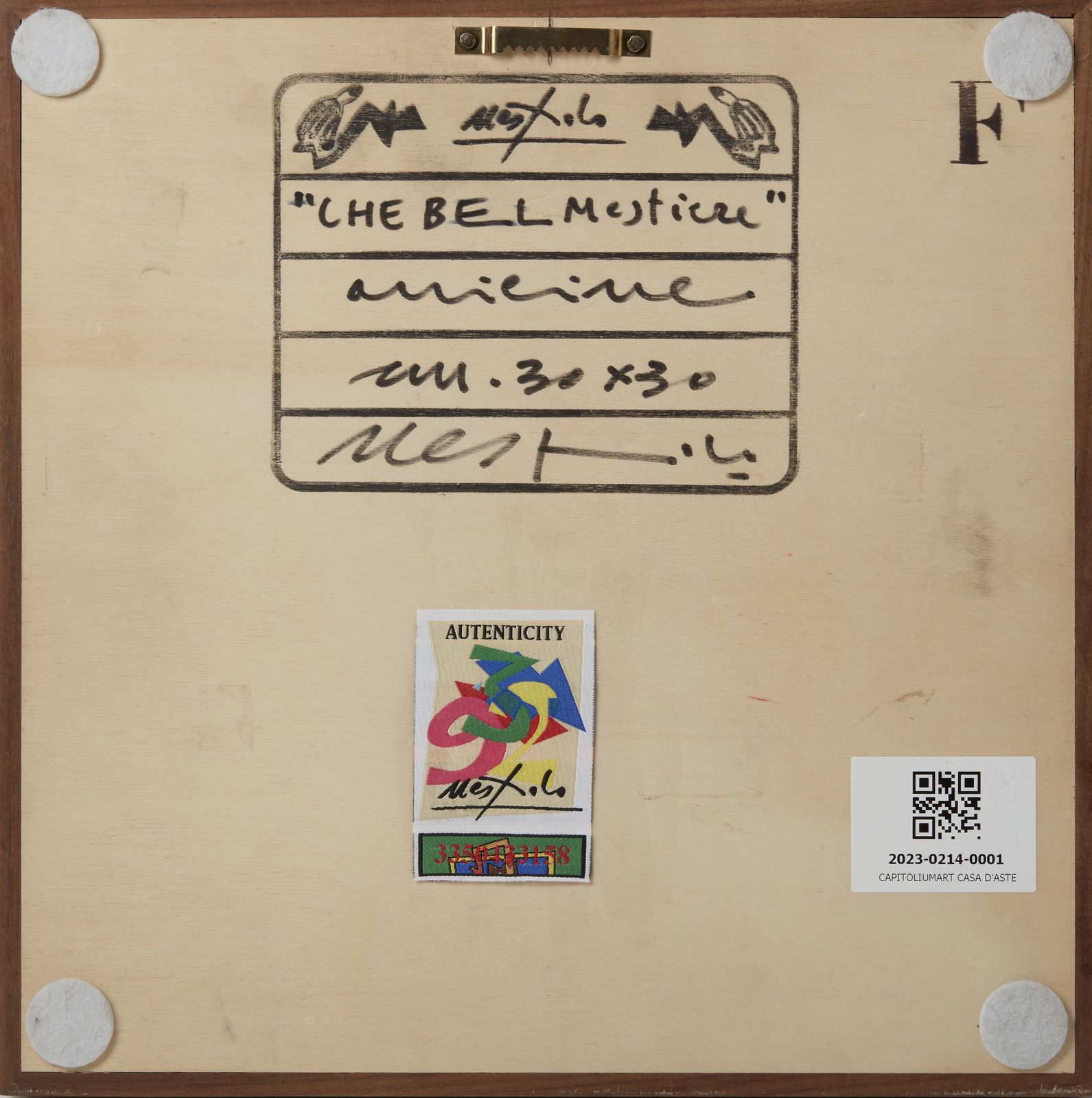 Firma in basso a destra. Al retro titolo, firma e cartiglio dell'artista. Autentica dell'artista su fotografia. Entro teca in plexiglass.