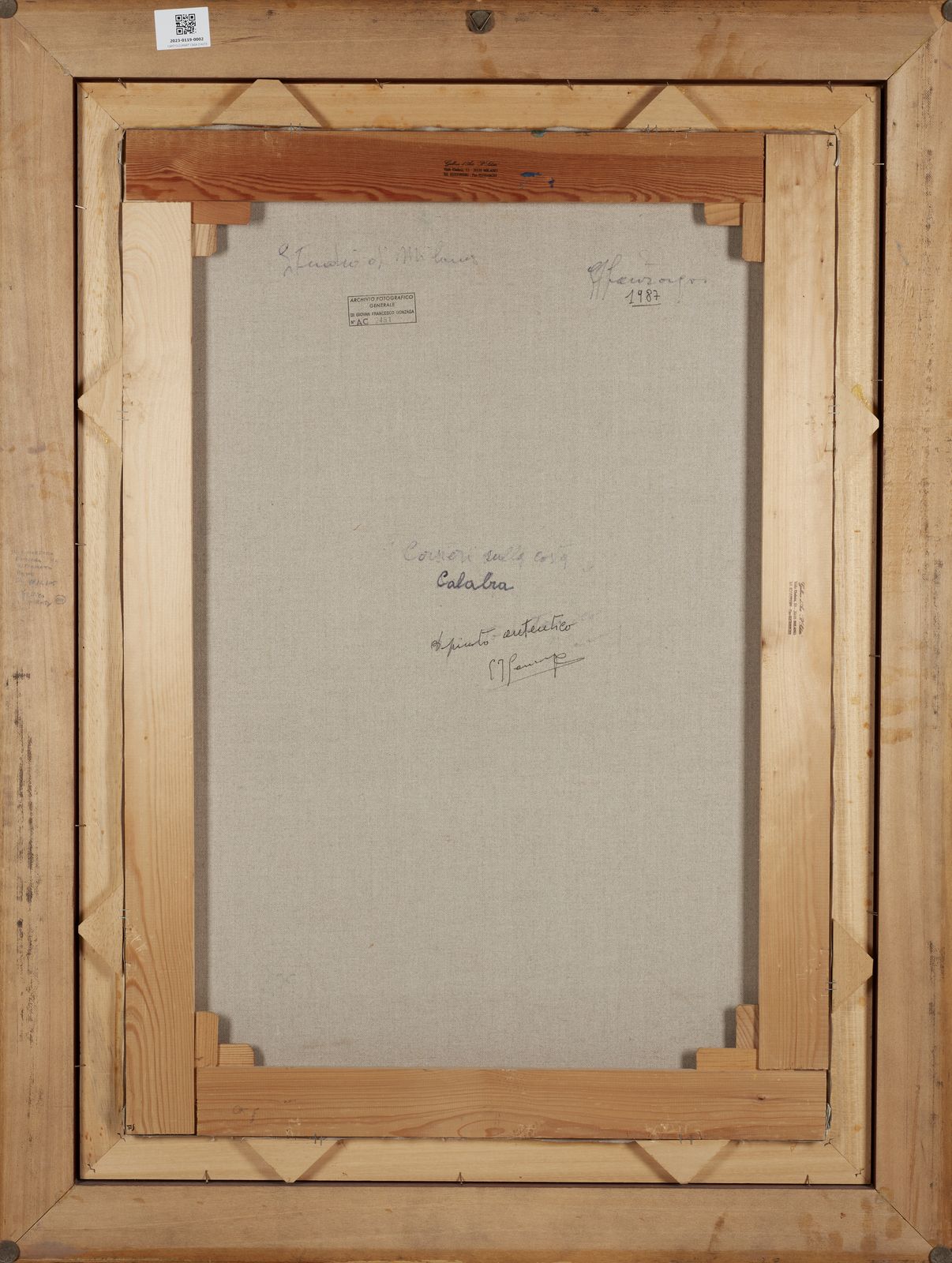 Firma in basso a destra. Al retro titolo, firma e timbro Archivio fotografico generale di Giovan Francesco Gonzaga e Galleria d'arte Il Salotto, Milano. Autentica dell'artista su fotografia riportante il relativo numero d'inventario. Pubblicazione: Catalogo Generale delle opere di Giovan Francesco Gonzaga, Primo Volume, Editoriale Giorgio Mondadori, Milano, 2006, p. 239.