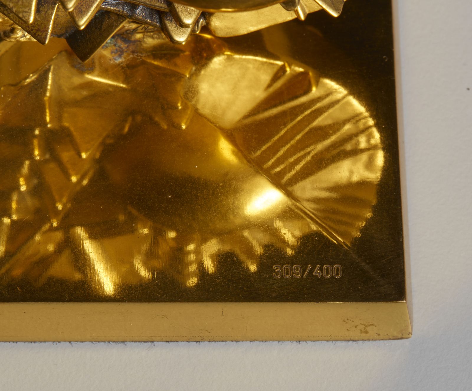 309/400. Tiratura sopra la base a incisione. Firma incisa e punzone S. Johnson. Disco realizzato da Johnson, Baranzate, per la Banca Svizzera Italiana di Lugano. Dimensioni disco: 8x8x2.5 cm. Dimensioni base: 8.5x8.5x1 cm. Edizione totale: 400 esemplari + prove d'artista. Opera registrata presso la Fondazione Arnaldo Pomodoro - sez. Multipli con il N. M/95/4. Edizioni Galleria Cesarea, Genova. Lievi difetti.