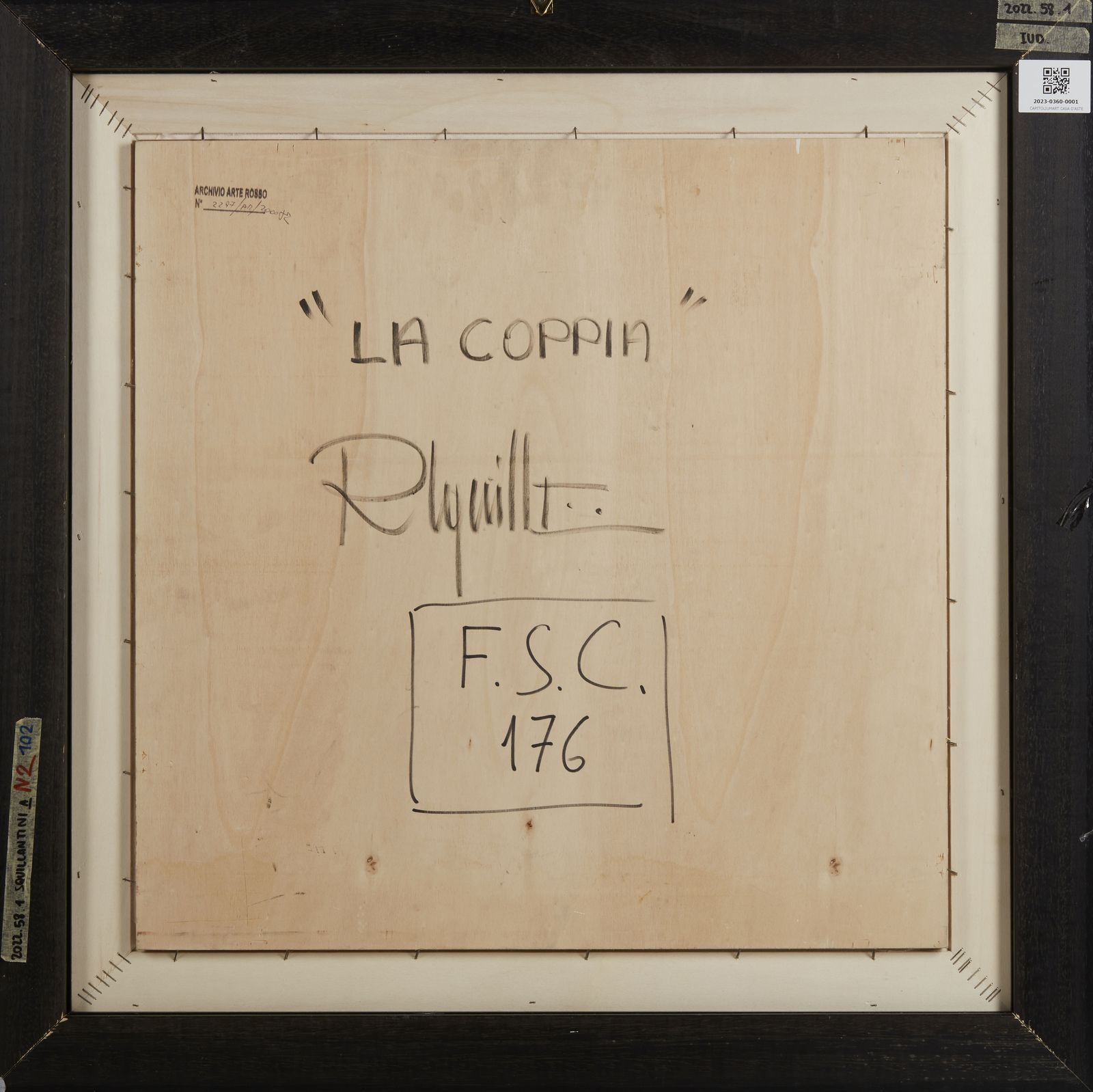 Firma in basso a sinistra. Al retro titolo, firma e timbro Archivio Arte Rosso. Opera registrata presso l'Archivio Remo Squillantini - Bianco Giovanbattista.