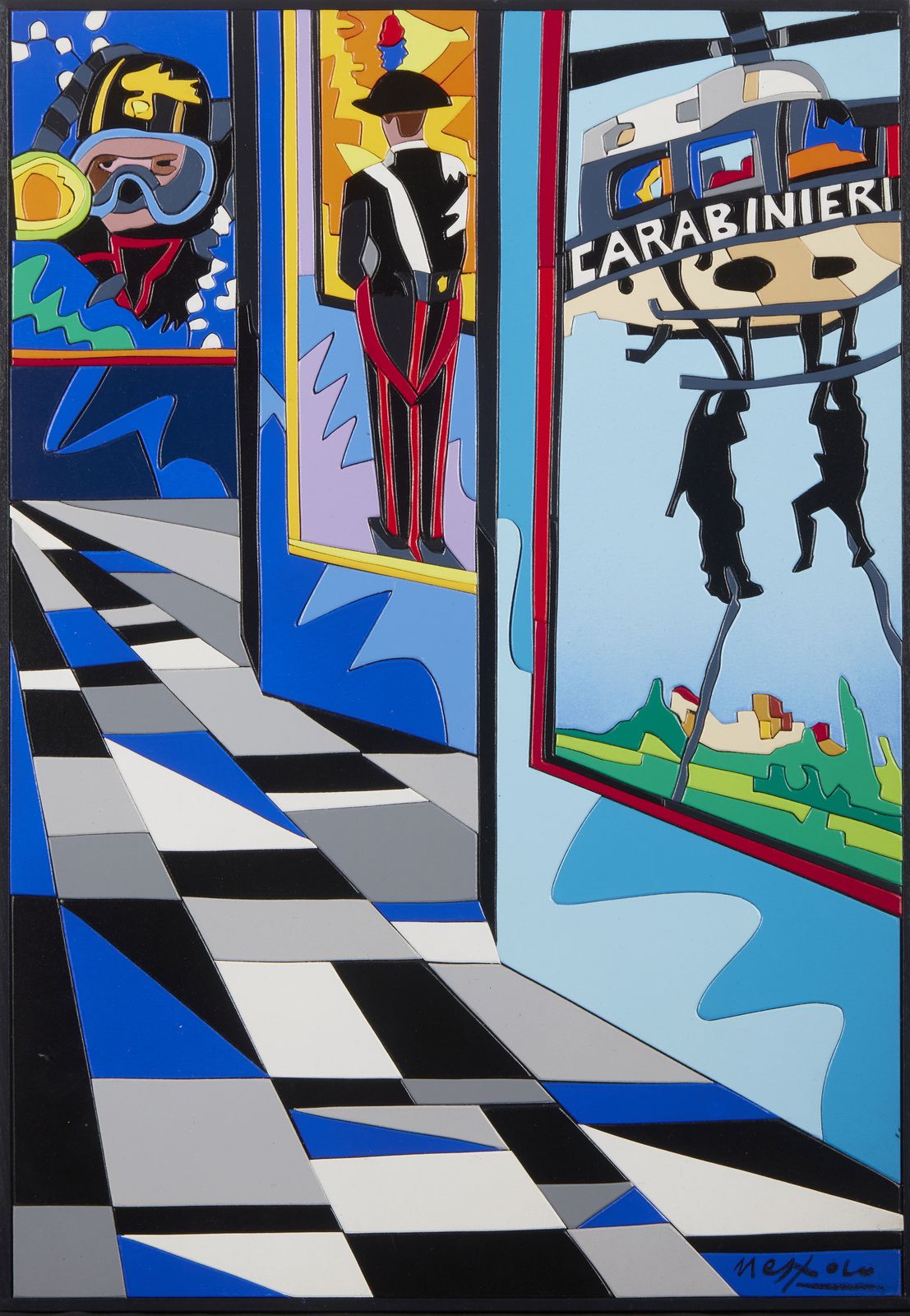 Firma in basso a destra. Al retro titolo e timbro dell'artista. Fotografia dell'opera con l'Artista.