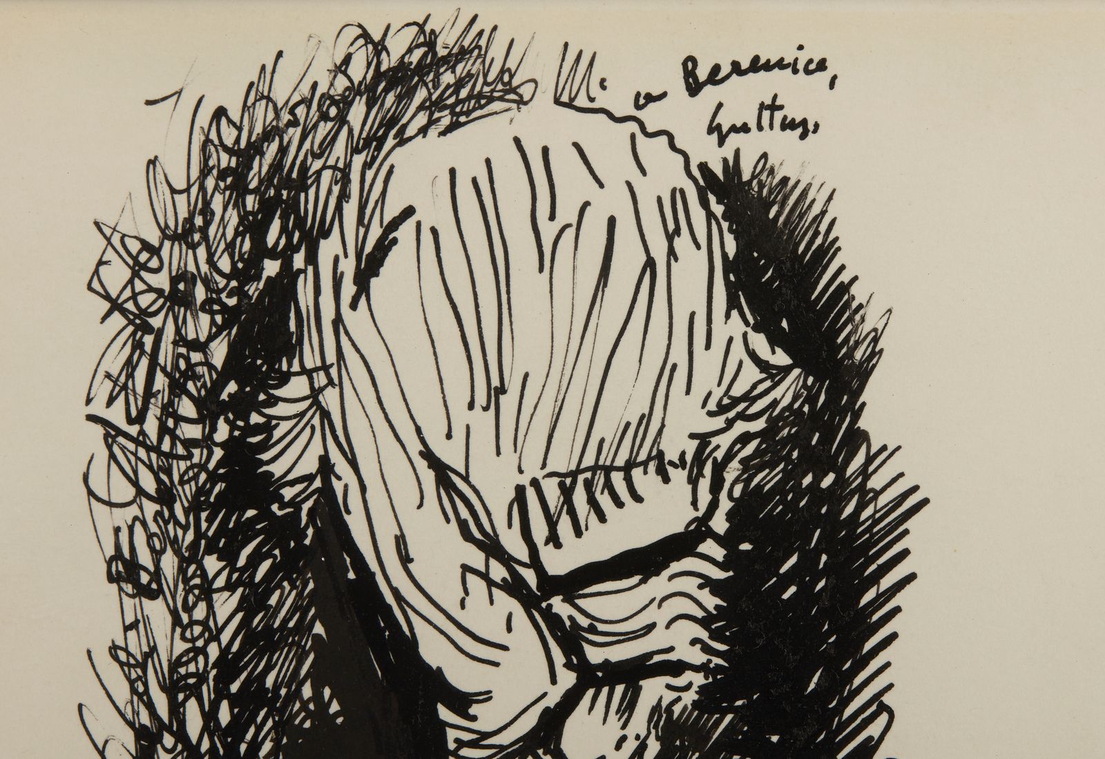 Firma e dedica in alto al centro. Opera archiviata presso l'Archivio Renato Guttuso, Roma, come da documentazione fotografica allegata all'opera riportante il relativo numero d'inventario. Anni '70. Lievi difetti.