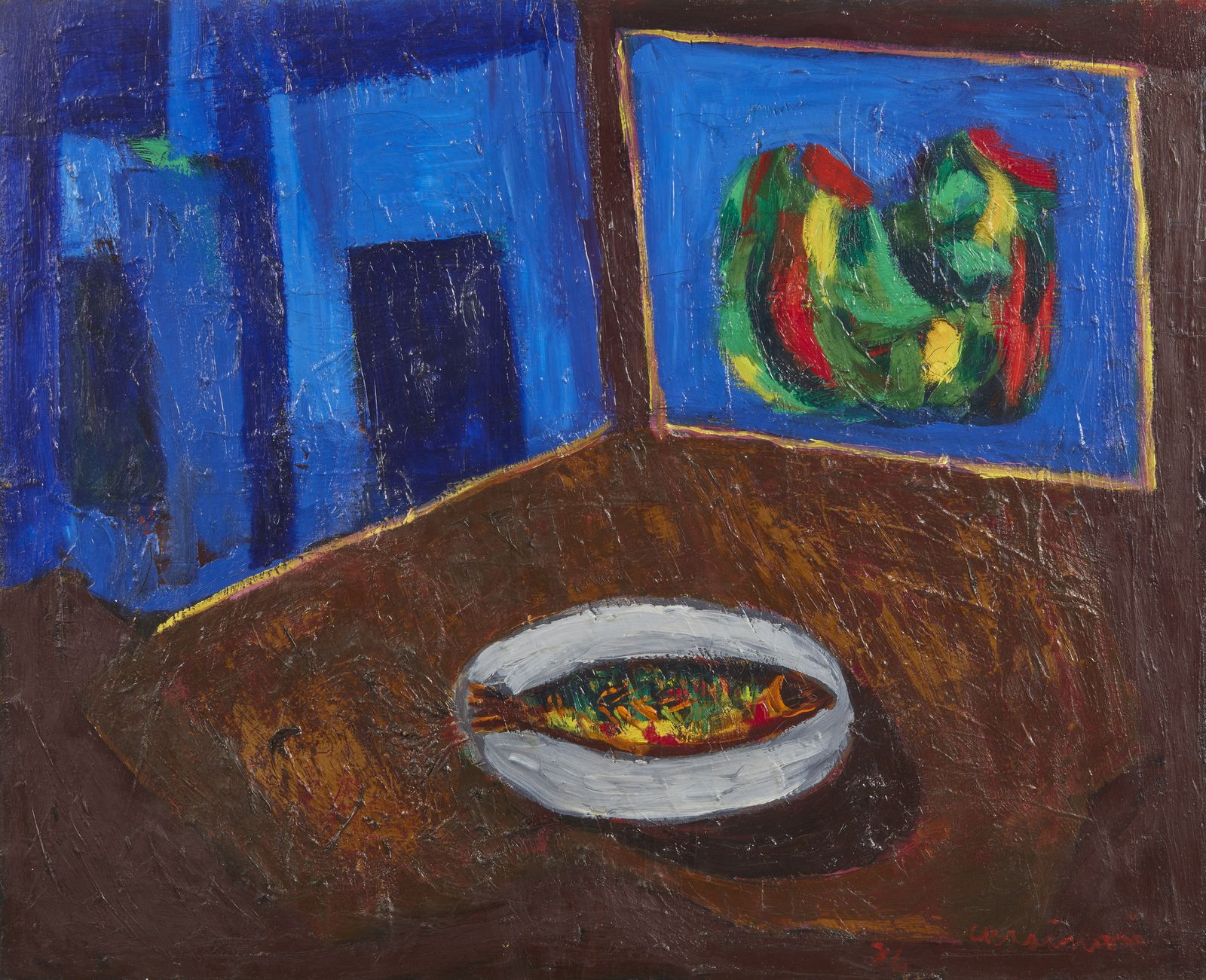 Firma e anno in basso a destra. Autentica dell'artista su fotografia con timbro della Galleria Contini, Venezia. Lievi difetti.