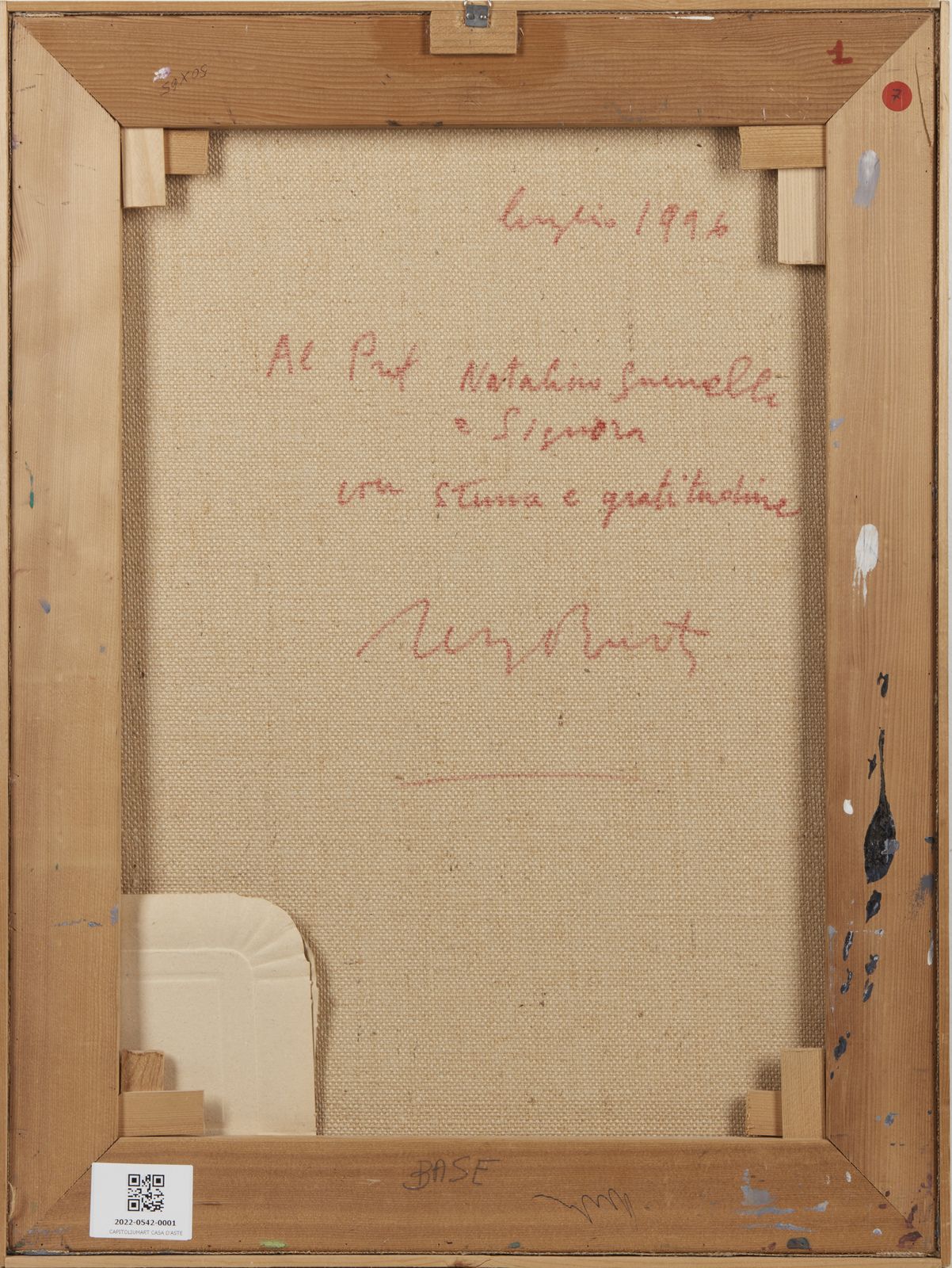 Firma in basso al centro. Al retro dedica, anno e firma. Lievi difetti.