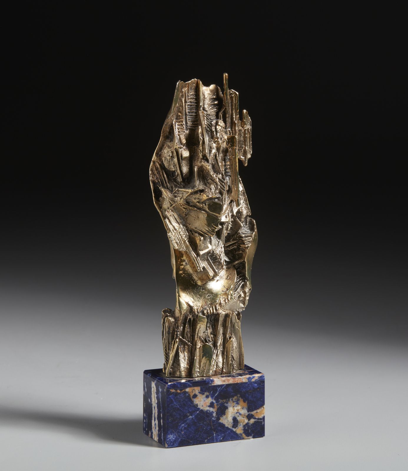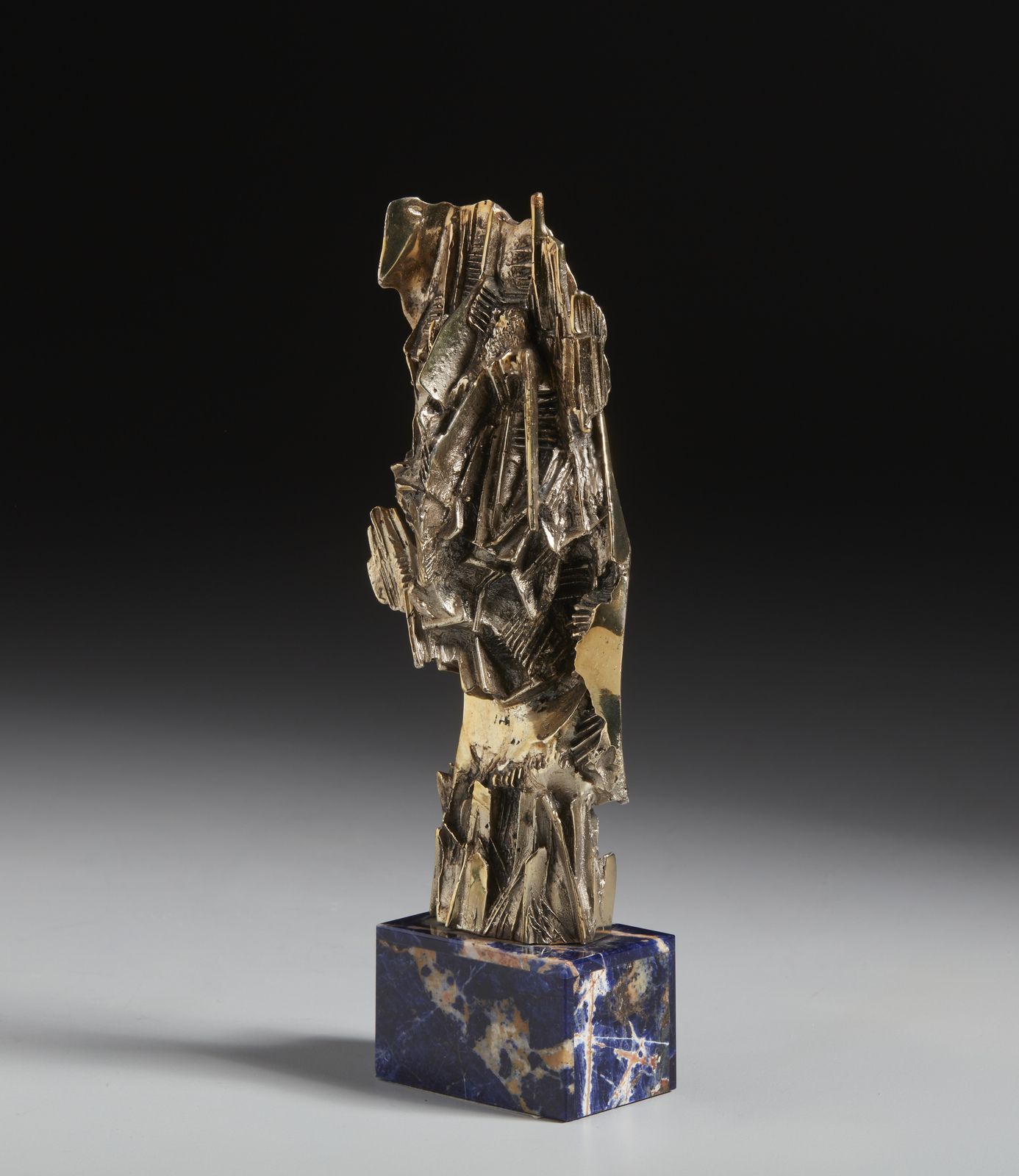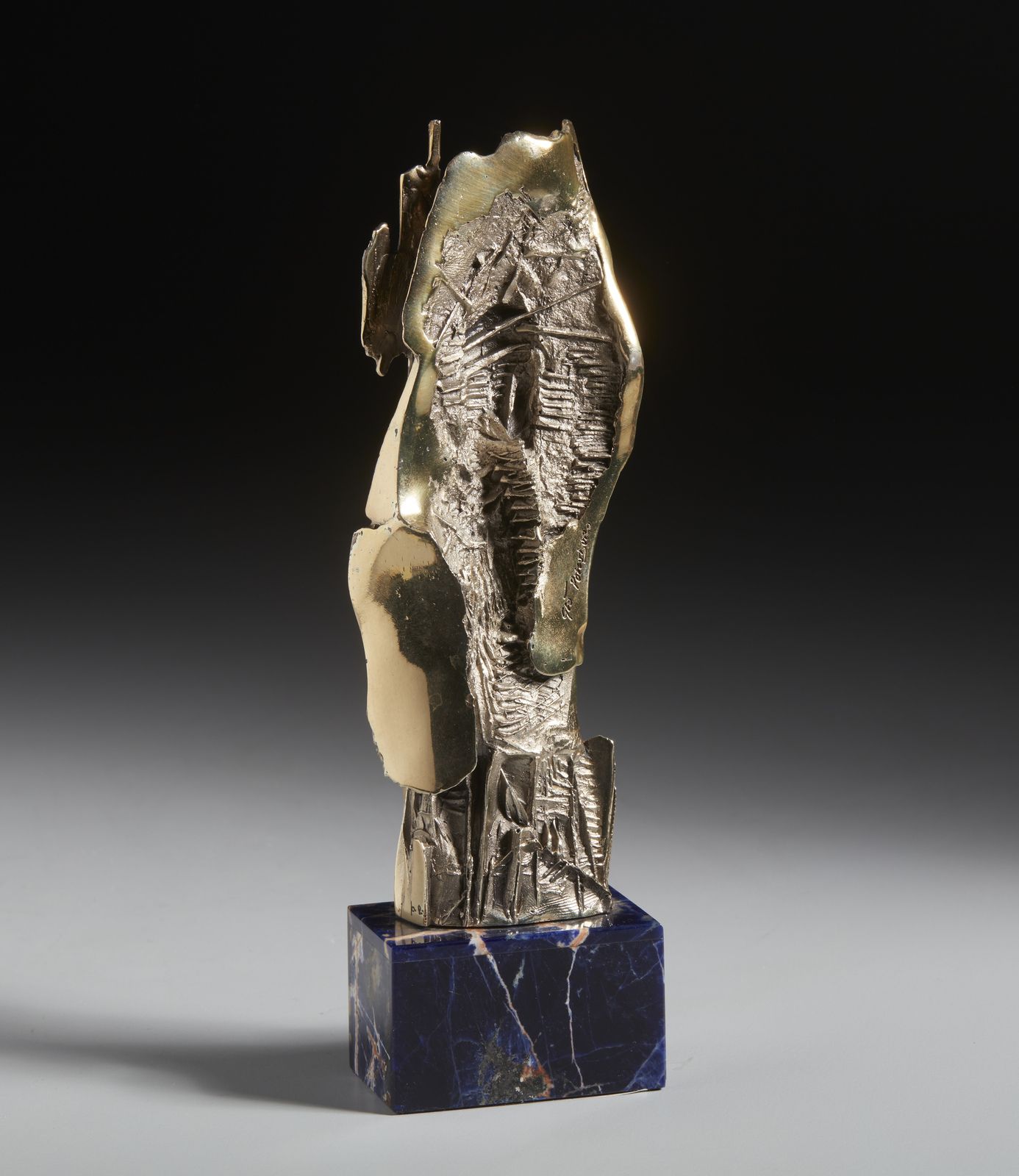 P.a. Tiratura e firma incise in basso. Dimensioni scultura: 18x8x5 cm. Dimensioni base marmo: 4x6.5x4 cm.