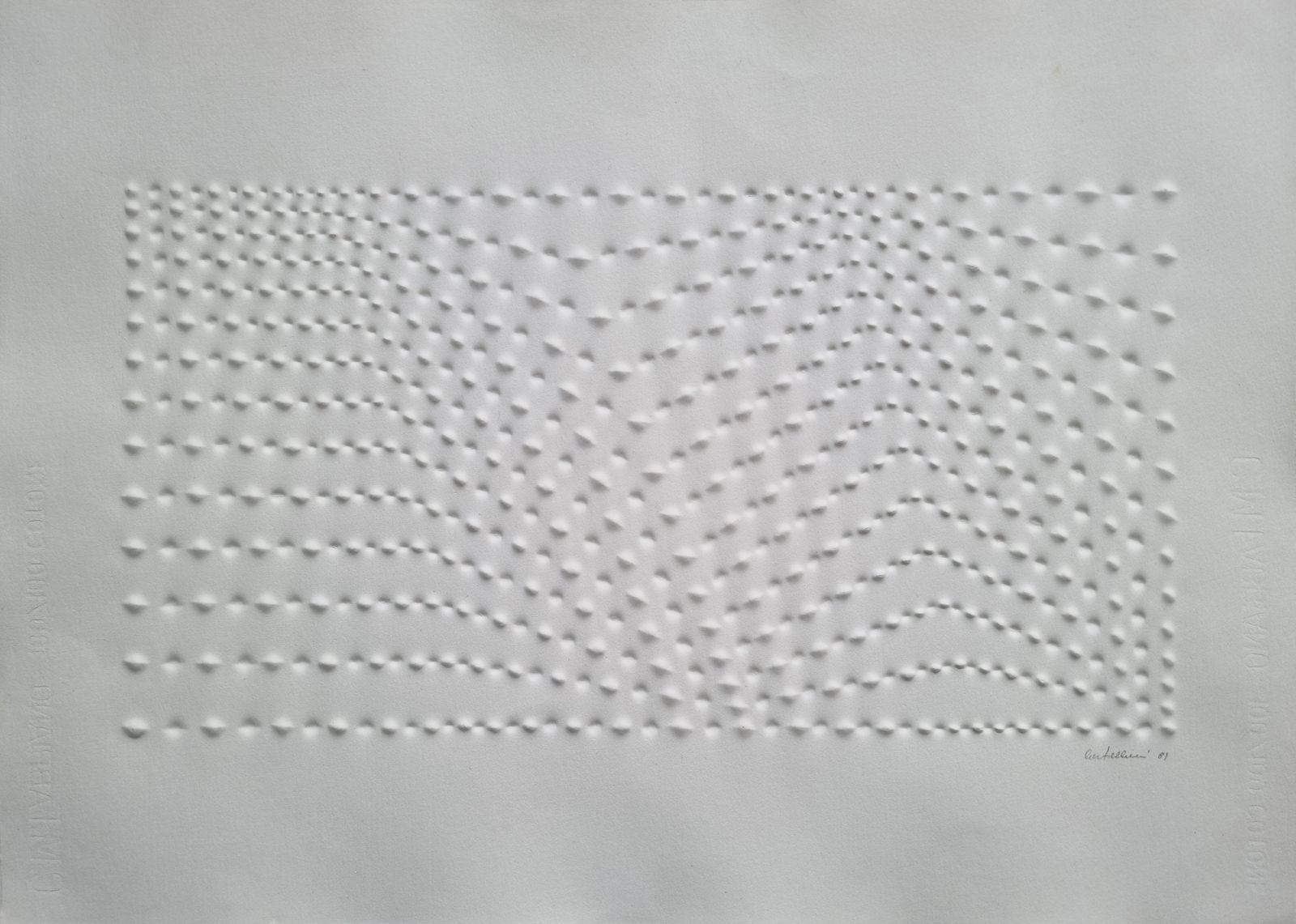 Firma e anno in basso a destra. Opera archiviata presso l'Archivio Enrico Castellani, Milano, come da documentazione fotografica allegata all'opera riportante il relativo numero d'inventario.