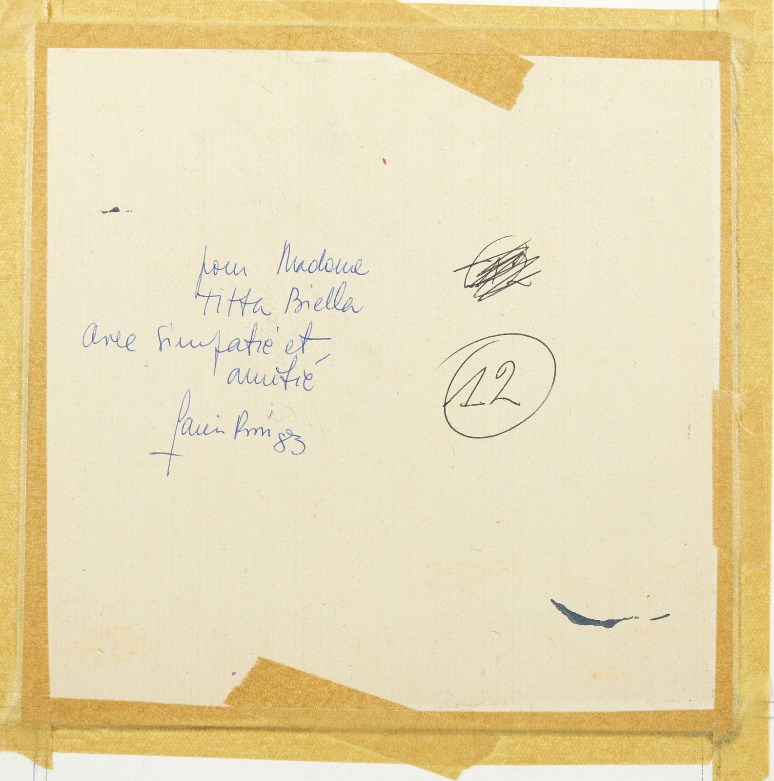 Firma e anno in basso a destra a matita. Al retro dedica, firma e anno. Provenienza: Galleria Melesi, Lecco. Collezione privata, Varese.