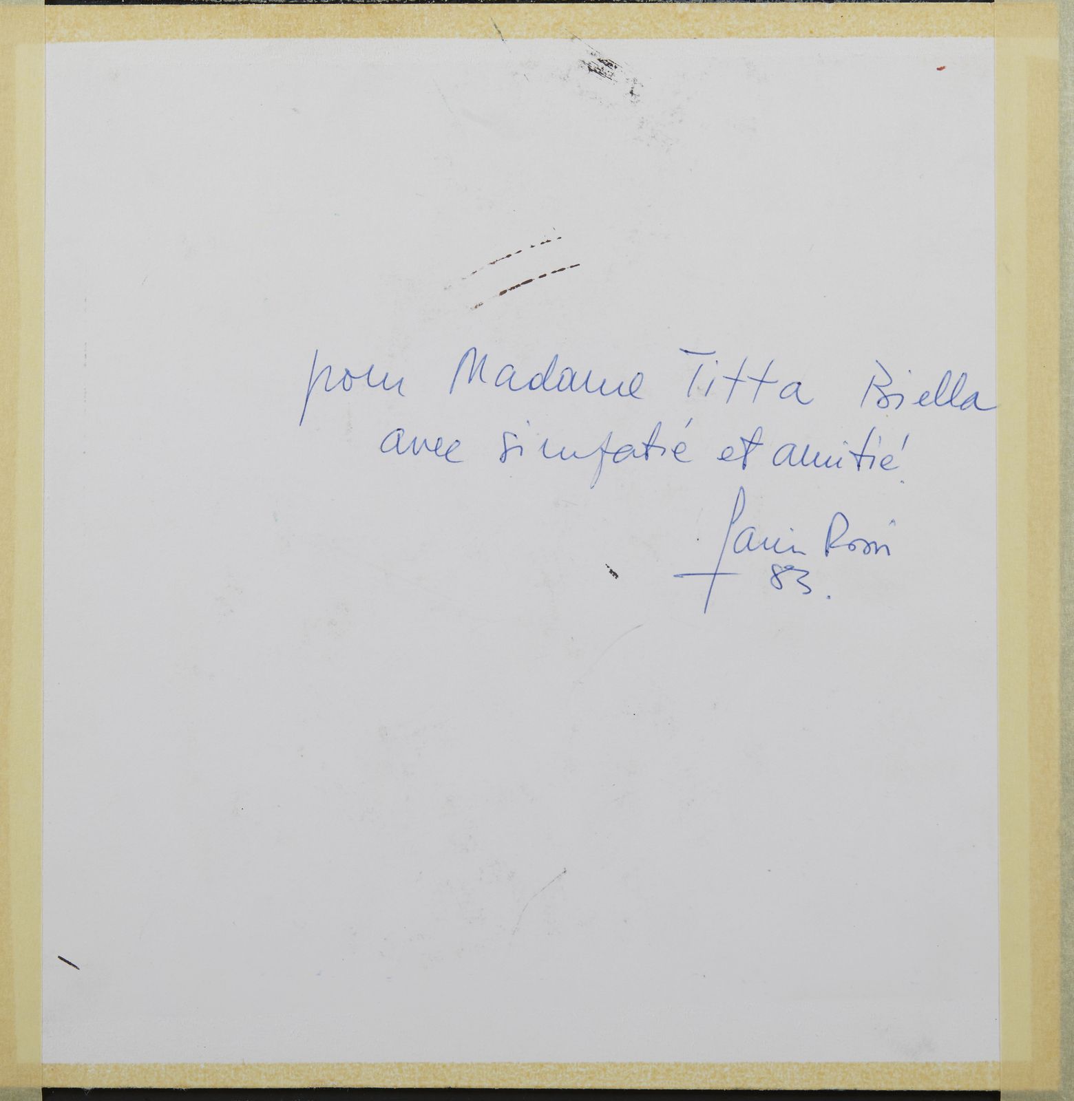 Firma e anno in basso a destra a matita. Al retro dedica, firma e anno. Provenienza: Galleria Melesi, Lecco. Collezione privata, Varese. Lievi difetti.