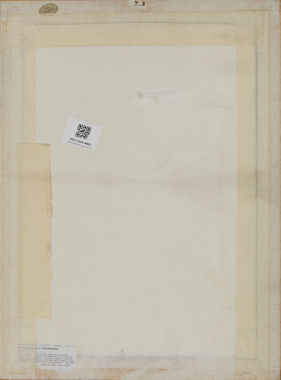 Firma in basso a destra. Titolo in alto a destra. Pubblicazione: Franz Borghese Il manuale della Fisiognomica, testi critici a cura di Alberto Del Giudice, Edizioni Il Gianicolo, Perugia, 1993, p. 72. Certificato di autenticità e provenienza Meeting Art, Vercelli. Provenienza: Meeting Art, Vercelli, 2006. Collezione privata, Torino.