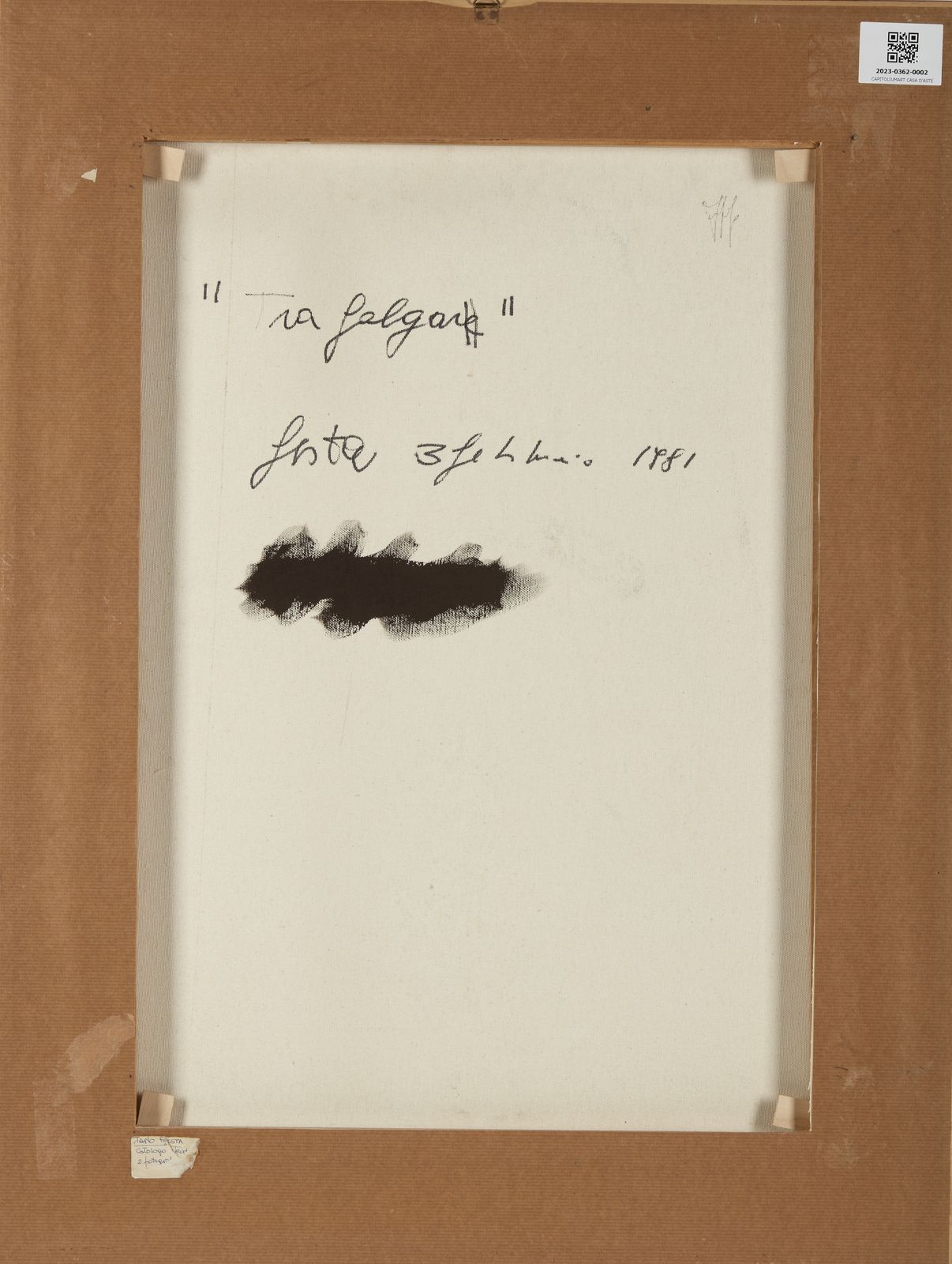 Al retro titolo, firma e anno. Opera archiviata presso lo Studio Soligo, Roma, come da documentazione fotografica allegata all'opera riportante il relativo numero d'inventario.