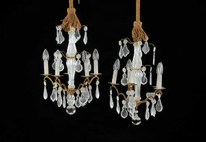 Coppia di piccoli lampadari a cinque luci in bronzo dorato
