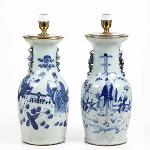 Coppia vasi in porcellana montati a lampada. Cina XX secolo