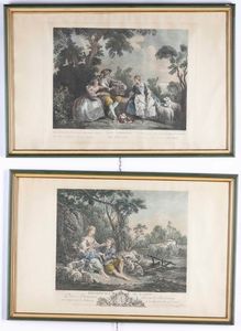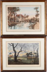 Coppia di stampe raffiguranti paesaggi fluviali