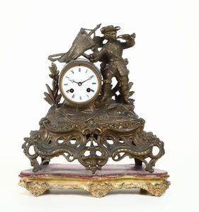 Pendola da tavolo in metallo dorato, XIX secolo