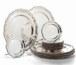 Lotto di sottopiatti e piattini da pane in metallo argentato