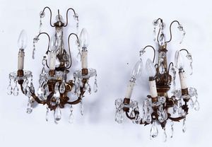 Coppia di appliques in legno a tre fiamme
