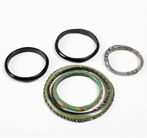 Cinque braccialetti di varie misure in terracotta e pietra dura, decorati a mano