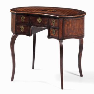Scrittoio a fagiolo intarsiato a marquetterie. Roma, XIX secolo