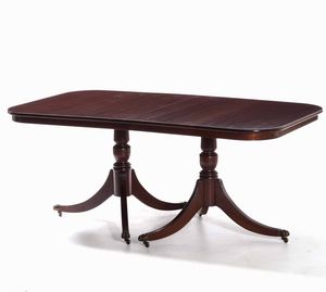 Tavolo allungabile lastronato in mogano. Inghilterra, XIX secolo