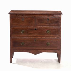 Cassettone in legno lastronato ed intarsiato. XIX secolo