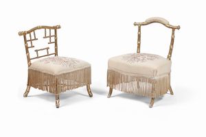 Gruppo di sei sedie e due poltrone in noce. Veneto XIX-XX secolo.