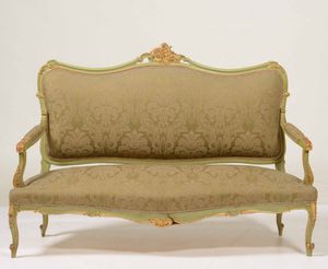 Divano e coppia di poltrone in noce intagliato Luigi Filippo