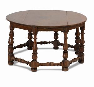 Tavolo rotondo con gambe tornite, XVIII-XIX secolo