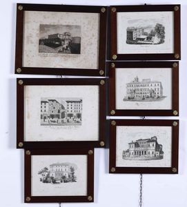 Serie di sei incisioni raffiguranti vedute di varie località.